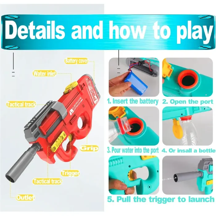 سواء في الحديقة، أو على الشاطئ، أو في حفلات المسابح – هذا المسدس الكهربائي هو رفيقك المثالي لصيف مليء بالضحك والمنافسة!