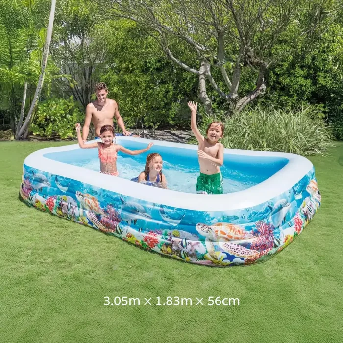 مسبح أطفال مستطيل كبير قابل للنفخ – 305 × 183 × 56 سم